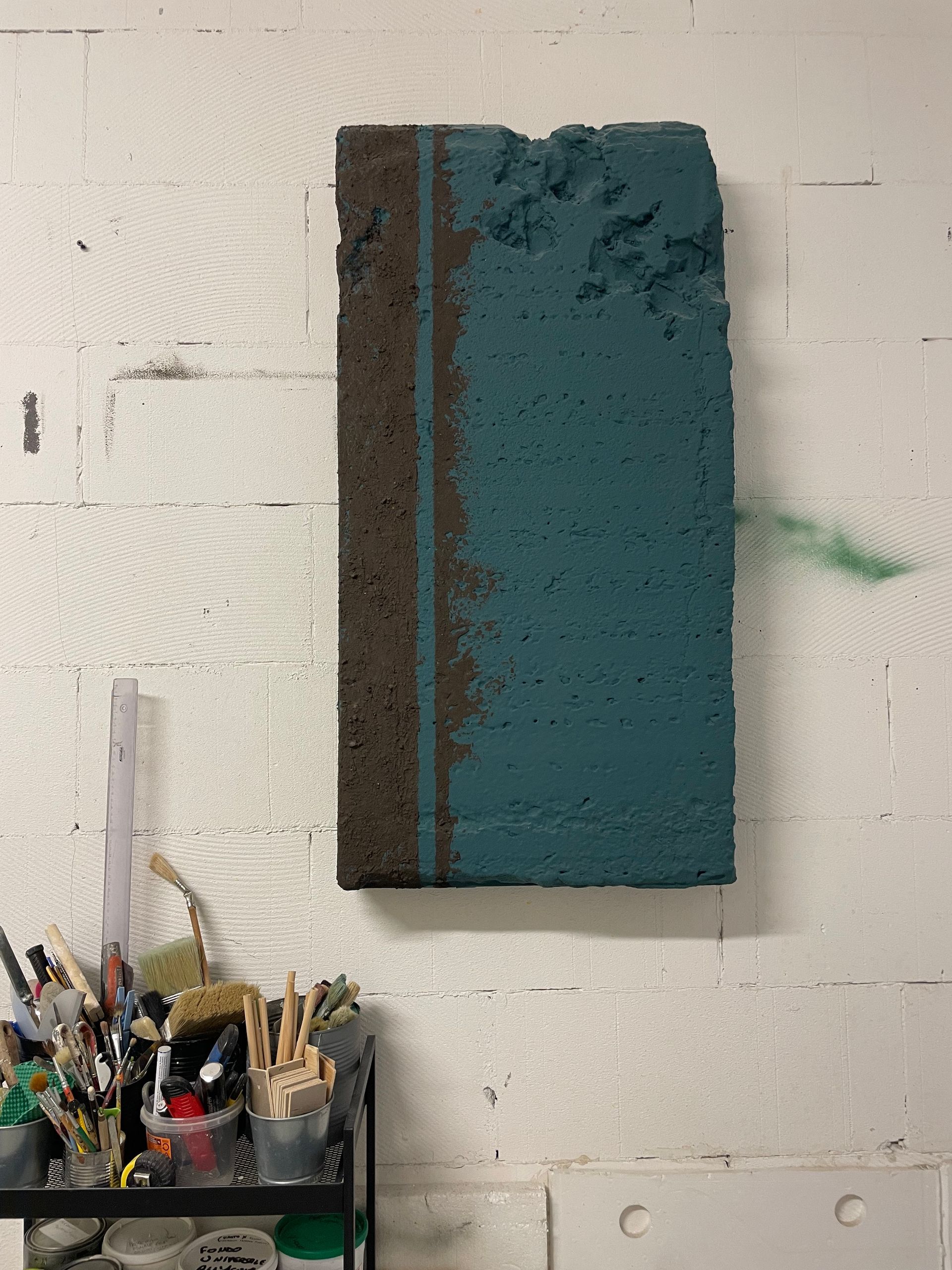 Un parte del mio tableau mariage si è trasformata in un opera a parete. Ecco perchè il titolo “Destiny”, a ricordo del destino che incontriamo lungo il nostro percorso. La serie Meetings è caratterizzata da opere che riportano tratti e linee di vario genere. Queste linee stanno a simboleggiare i vari incontri che ognuno può fare durante il suo cammino. In questo caso la linea ha una texture materica con pigmenti di ferro al suo interno, risultando quasi metallica all’occhio.