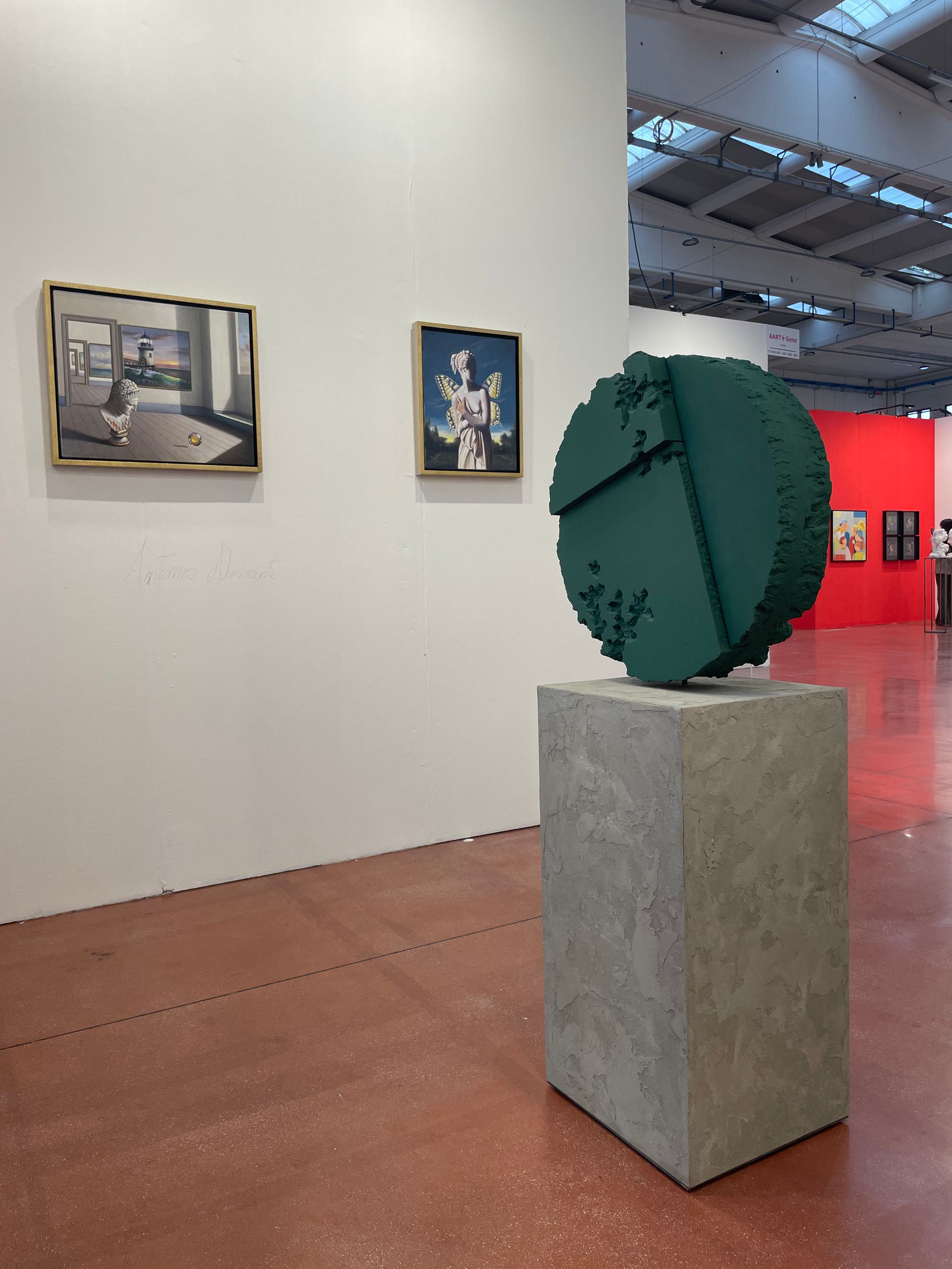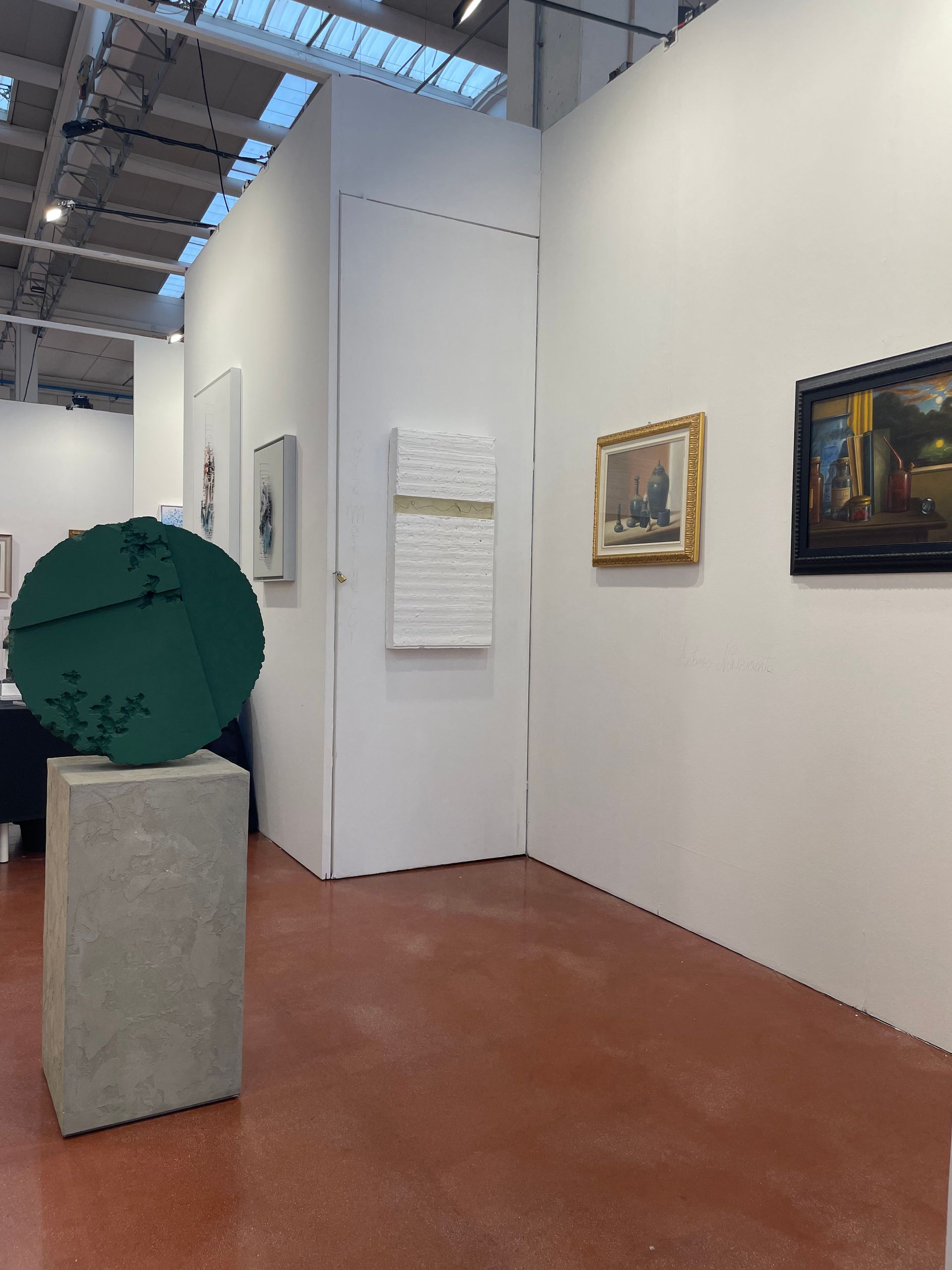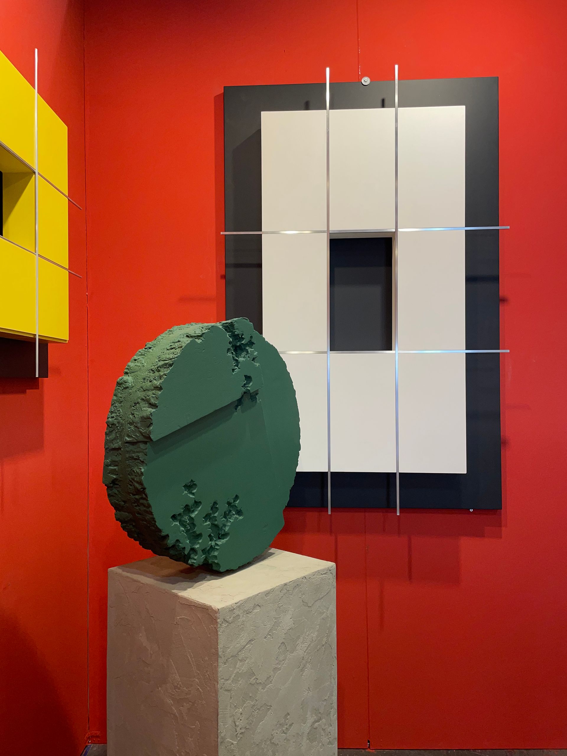 Questa volta il tondo si trova su un piedistallo e ruota a 360°. Un unico colore ma diverse profondità di materia.