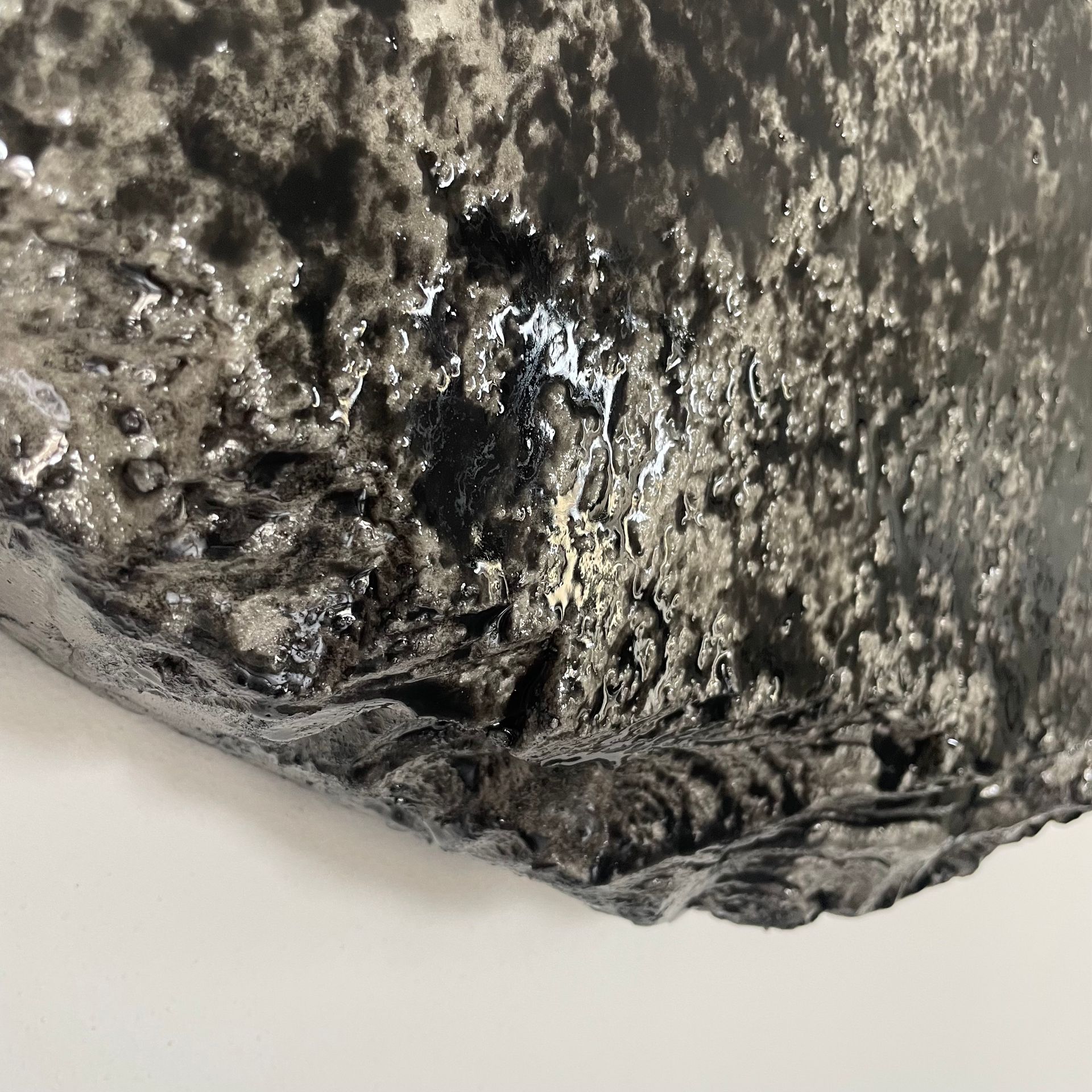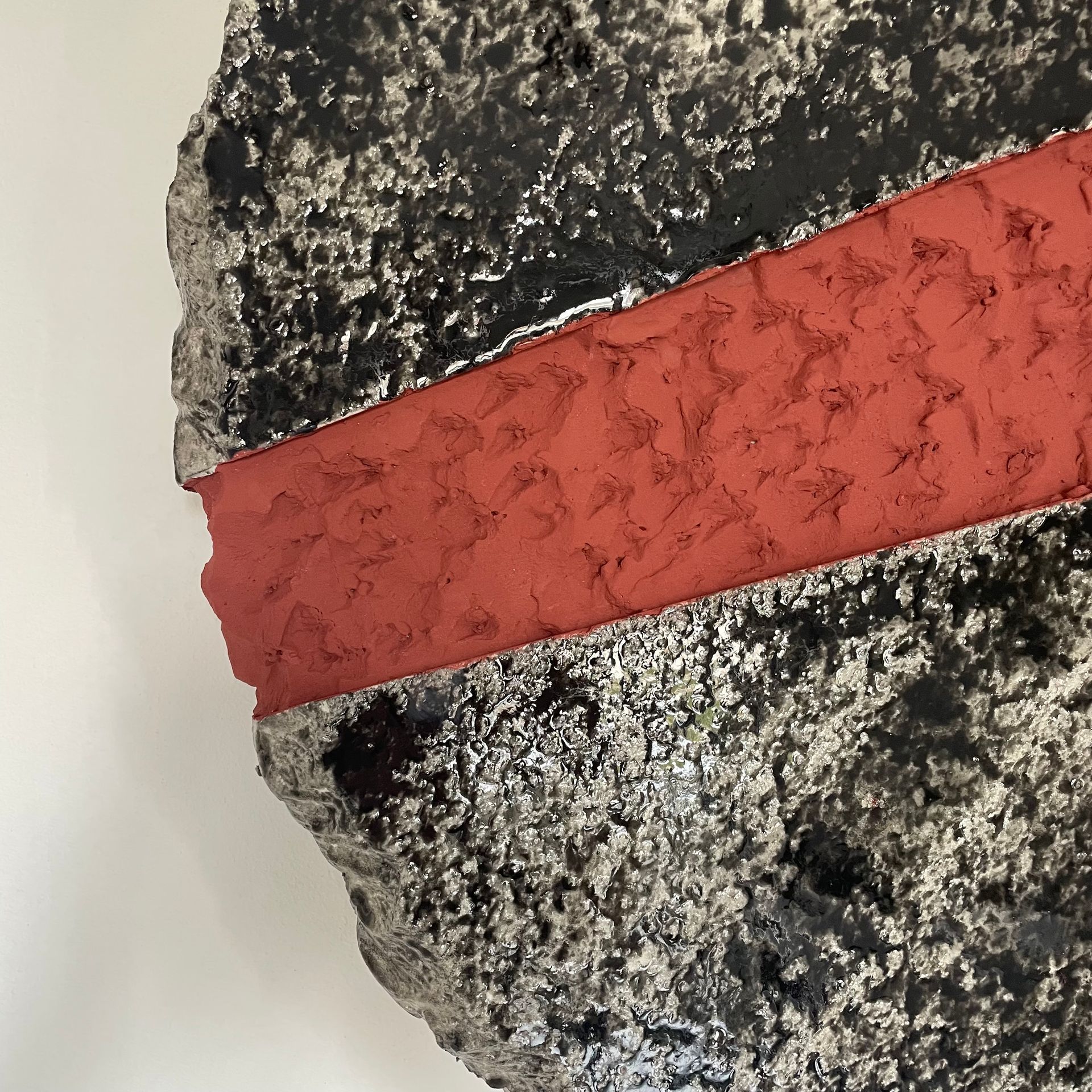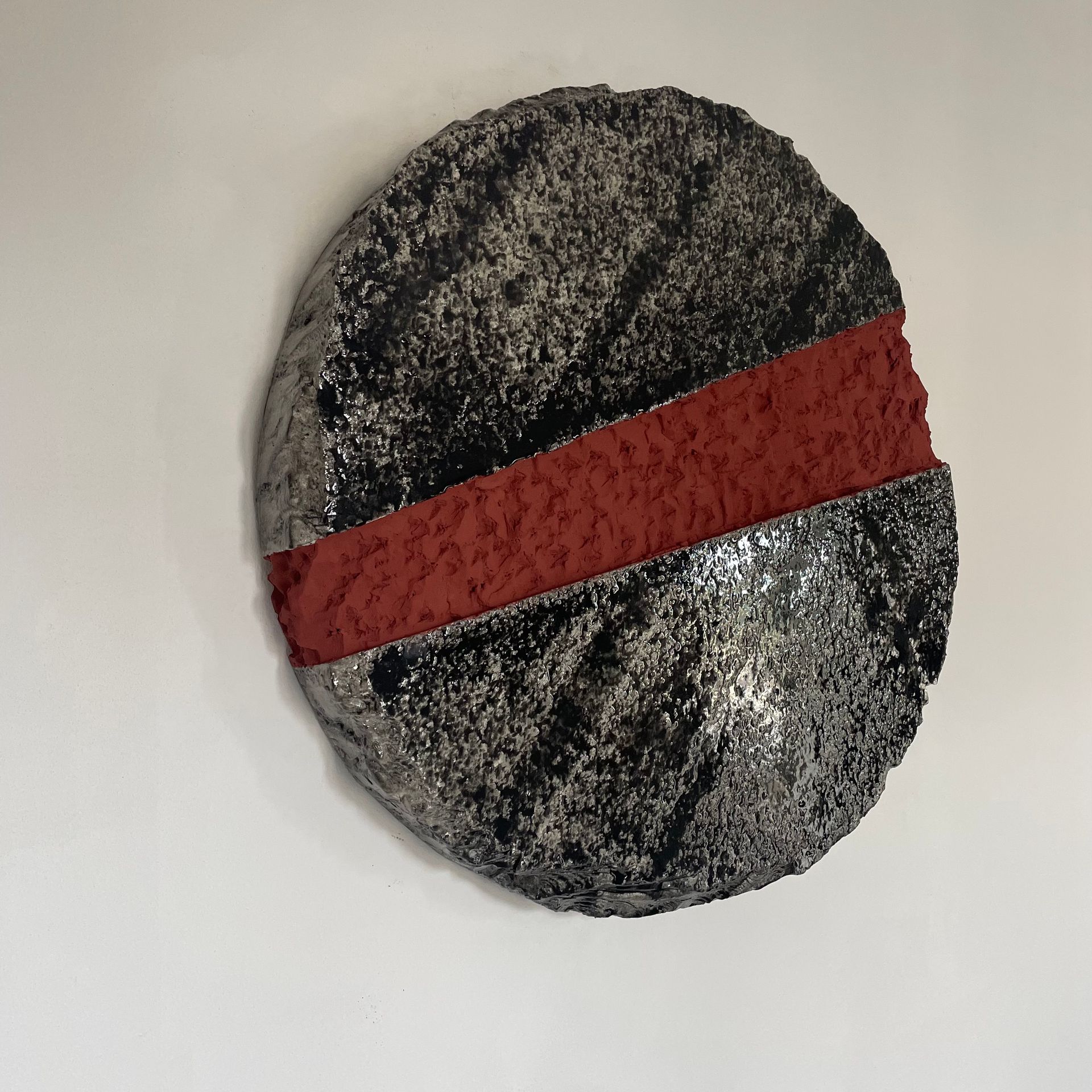 Tondo complementare dell’opera “ Sunrise”. L’accostamento di colori quì è più delicato, ma sempre innovativo. è la parte geometrica più piccola ad avere una maggiore profondità e a spiccare per le crepe e il tono di terracotta. La parte in cemento invece collassa creando una conca quasi al centro dell’opera.