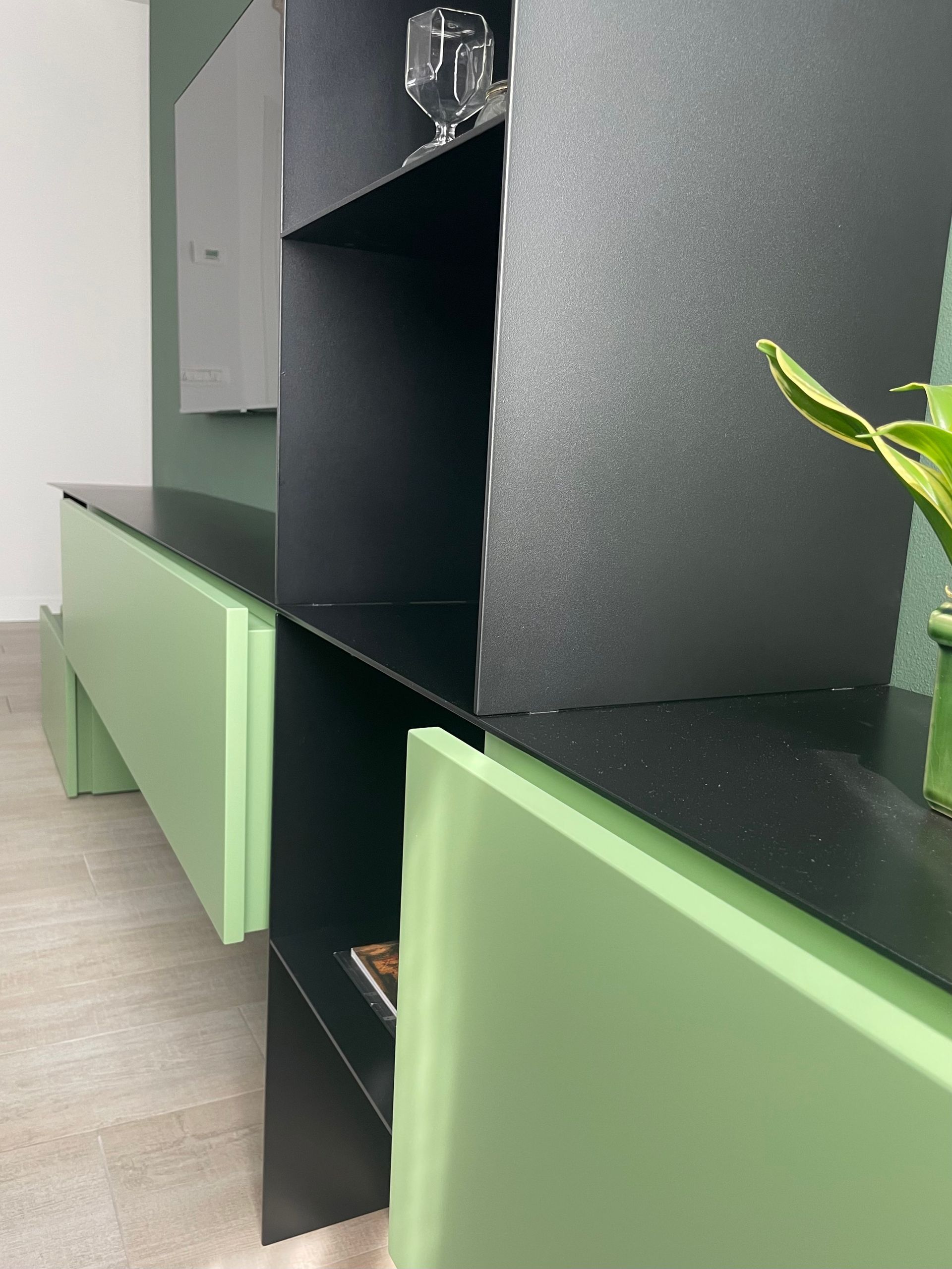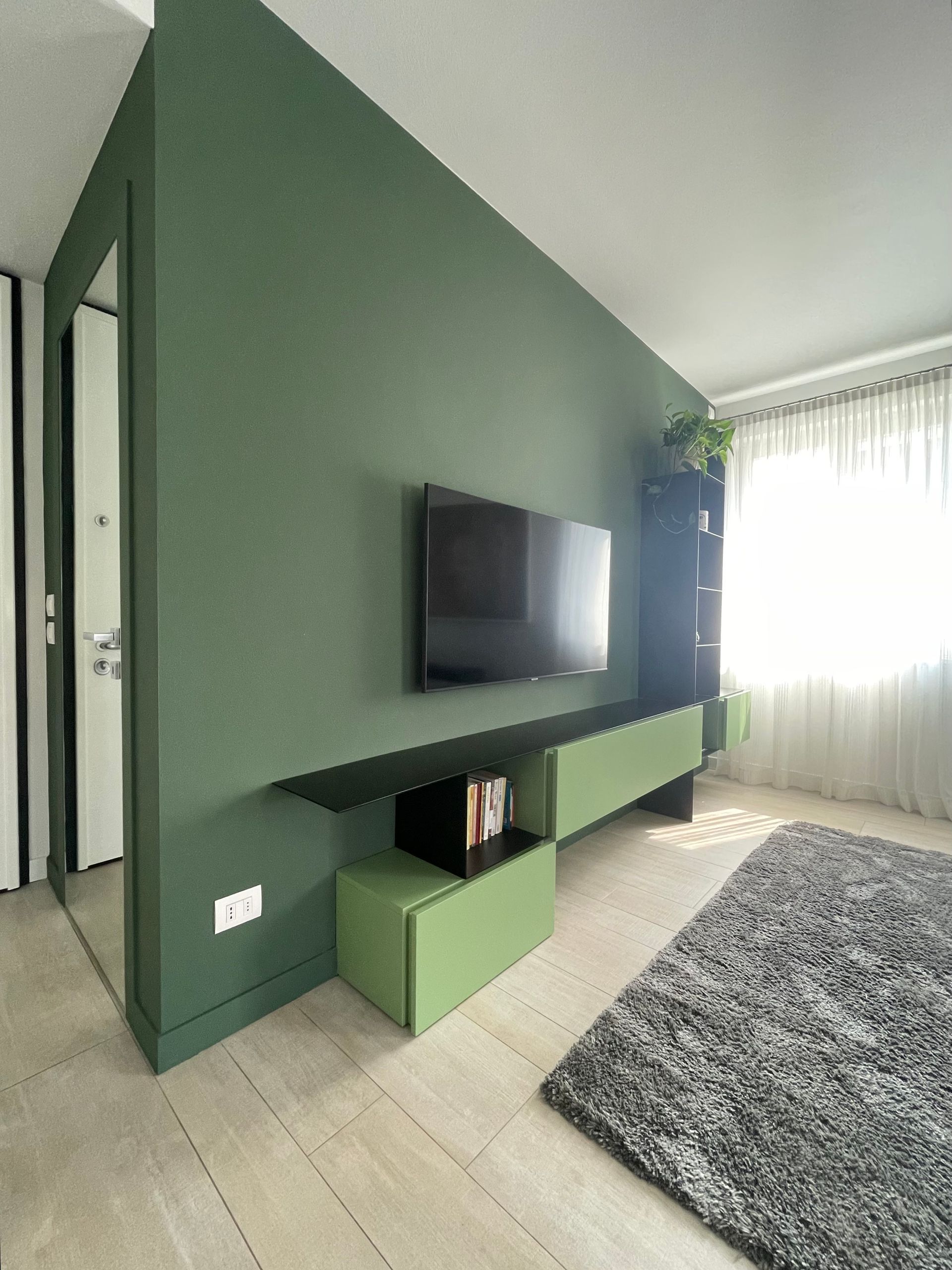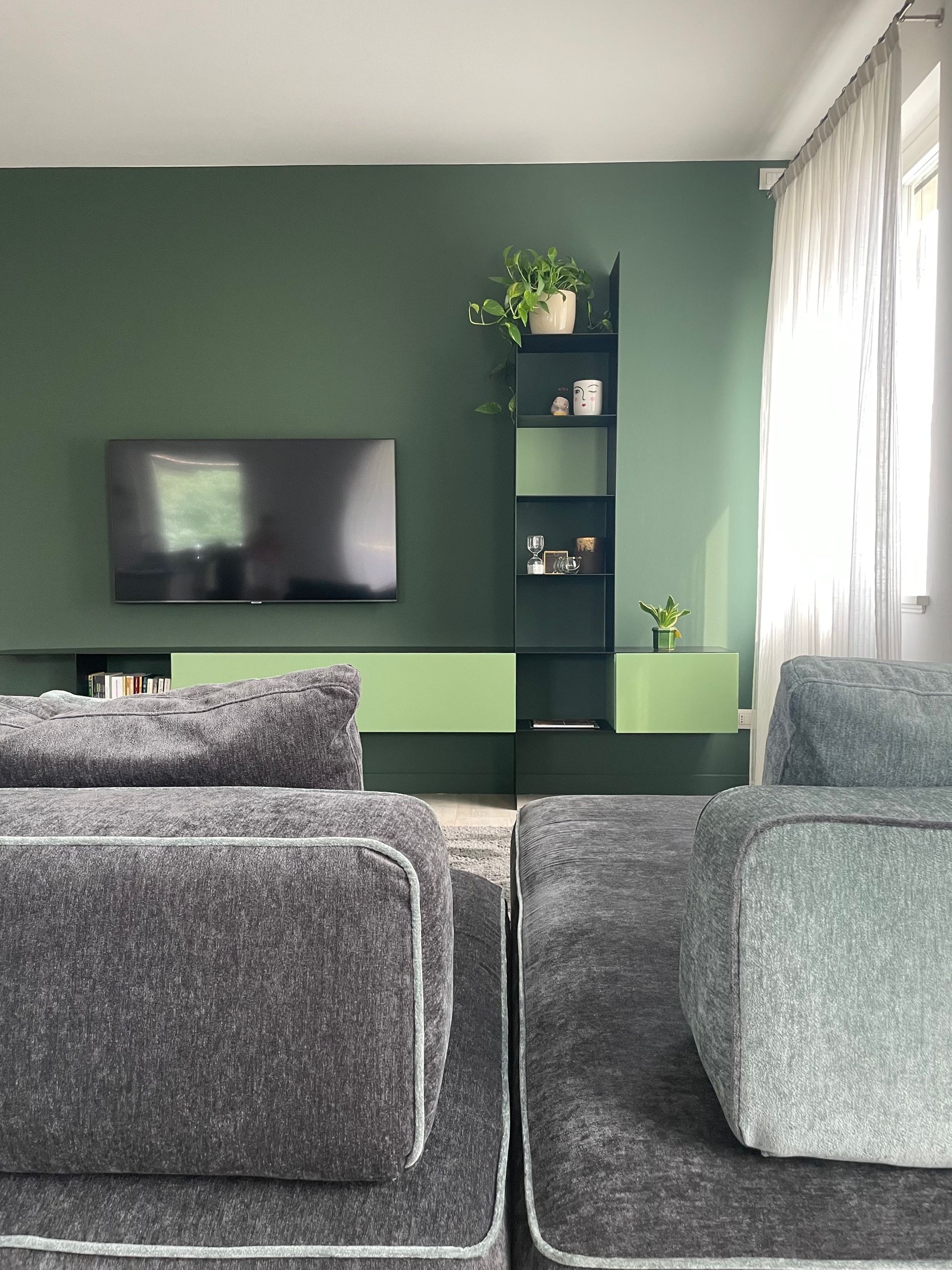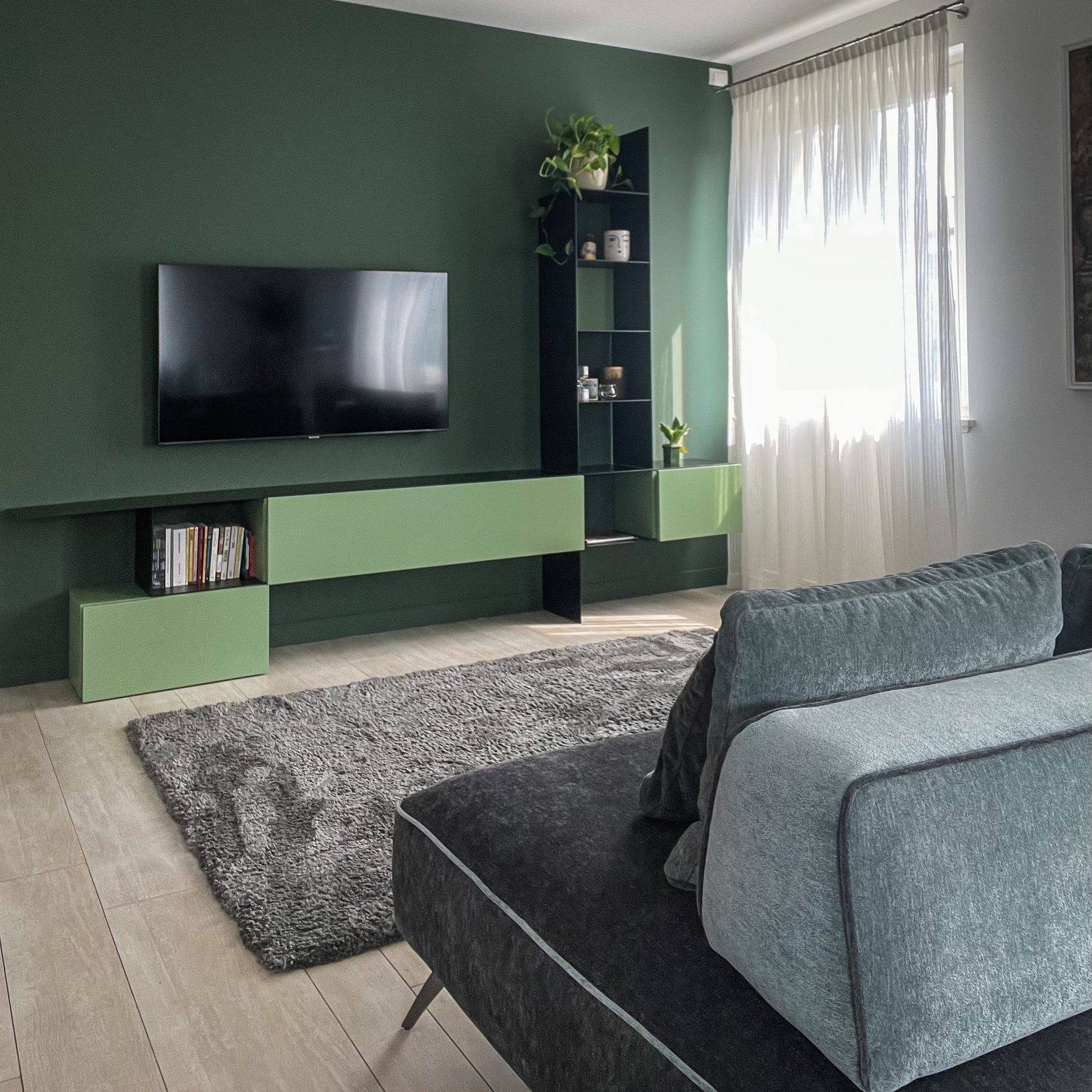 L'obiettivo era di rinfrescare e rendere essenziale lo spazio... Mobile tv, carta da parati, pittura pareti, tavolo su misura, nuove sedie, nuovo divano... il risultato? Un nuova casa in poco tempo.