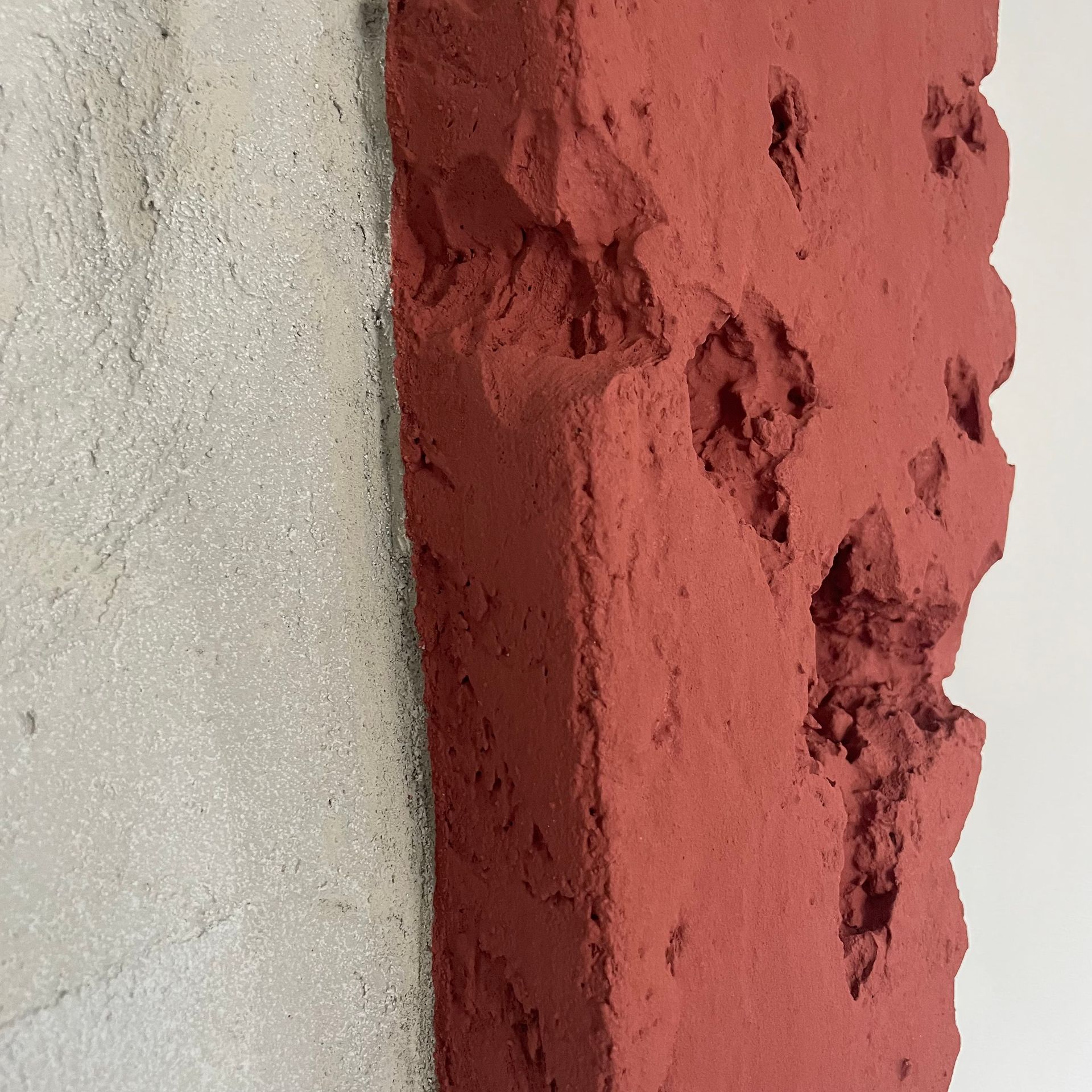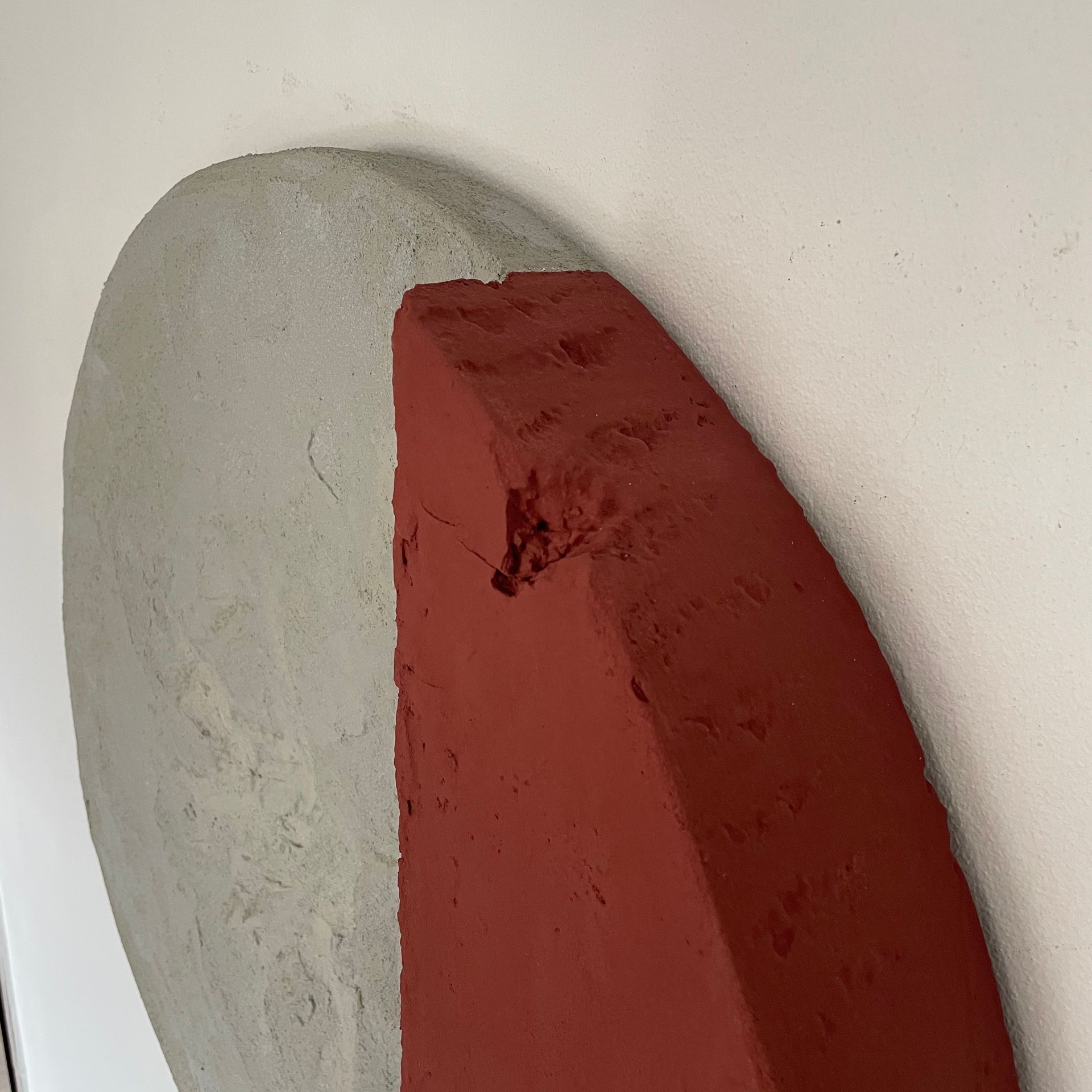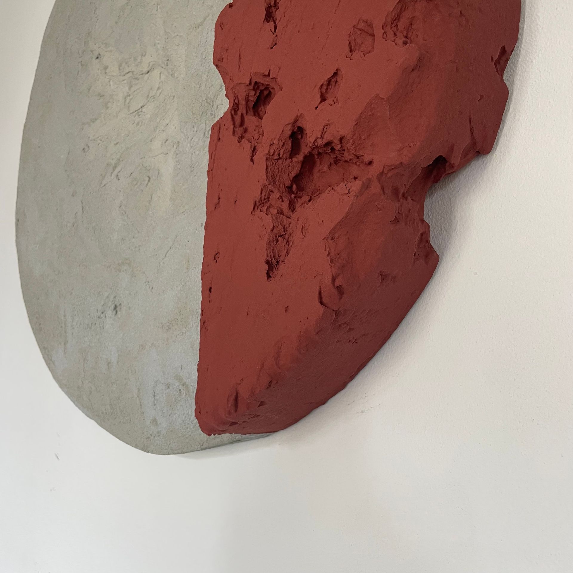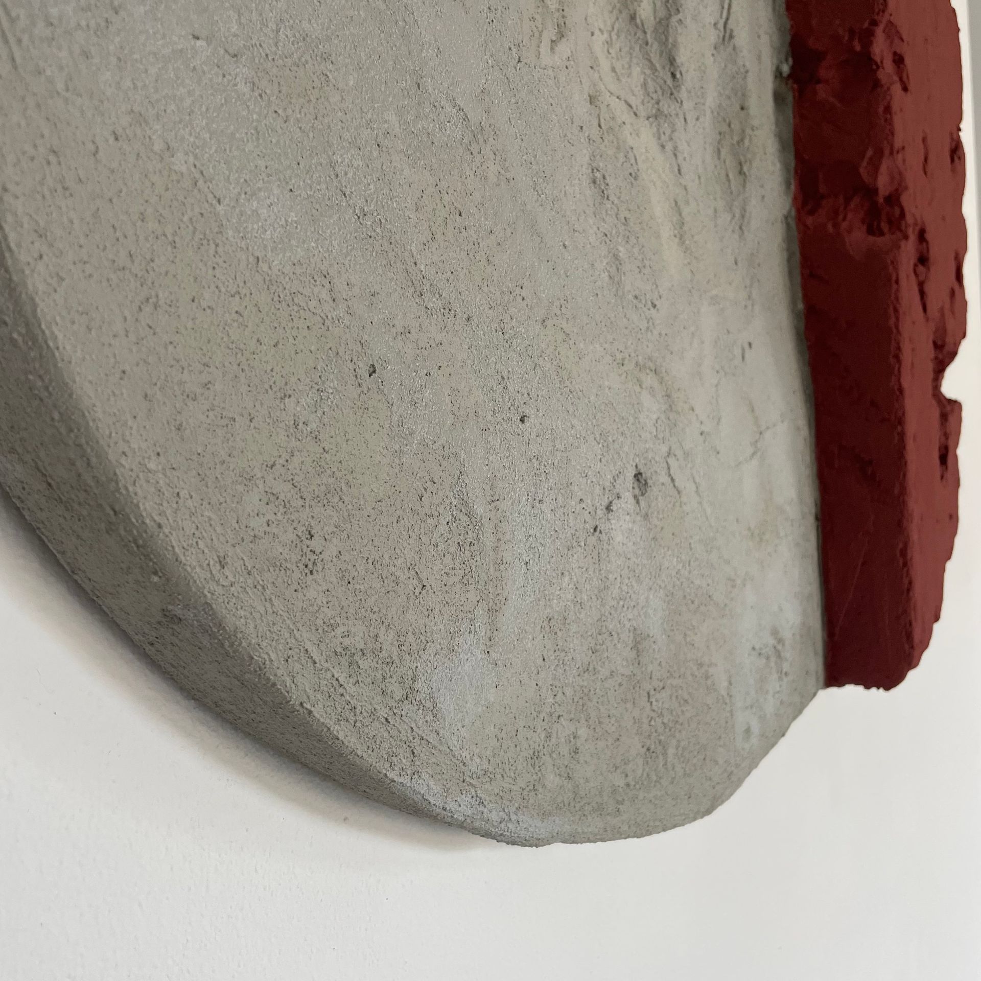 Tondo complementare dell’opera “ Sunrise”. L’accostamento di colori quì è più delicato, ma sempre innovativo. è la parte geometrica più piccola ad avere una maggiore profondità e a spiccare per le crepe e il tono di terracotta. La parte in cemento invece collassa creando una conca quasi al centro dell’opera.