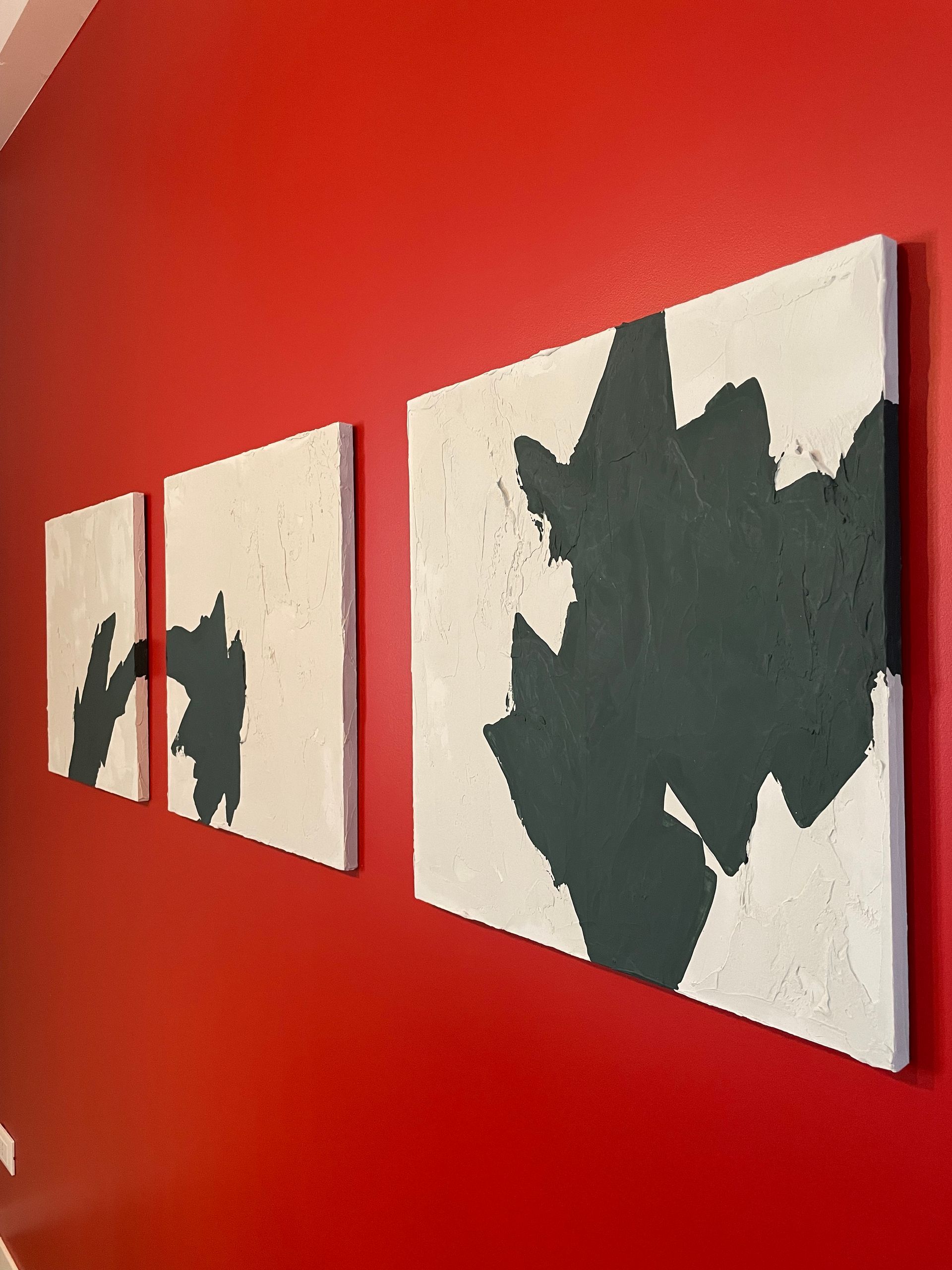Il mio intento è stato quello di alleggerirla senza che però perdesse di significato. Questo verde salvia ora crea un disegno che per primo cattura l'attenzione. Il rosso passa quindi in secondo piano sullo sfondo.