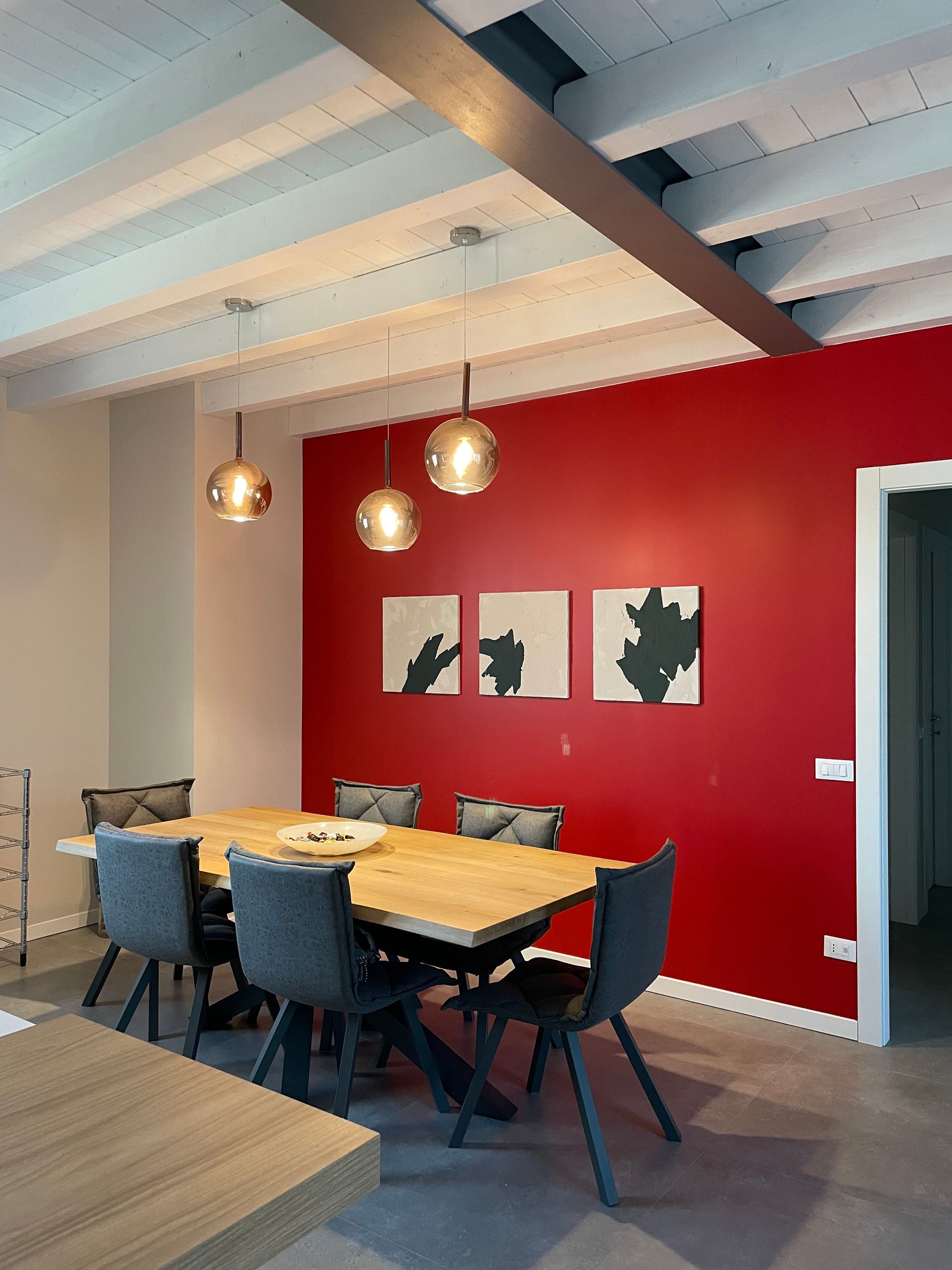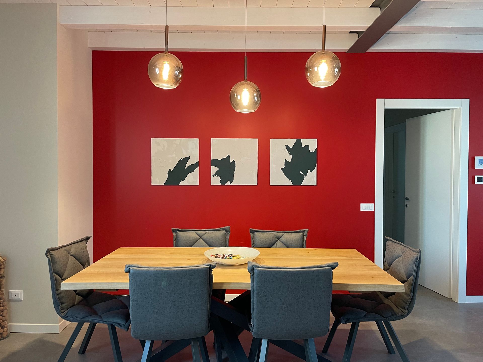 Sto parlando di questa parete rossa, protagonista della zona giorno.