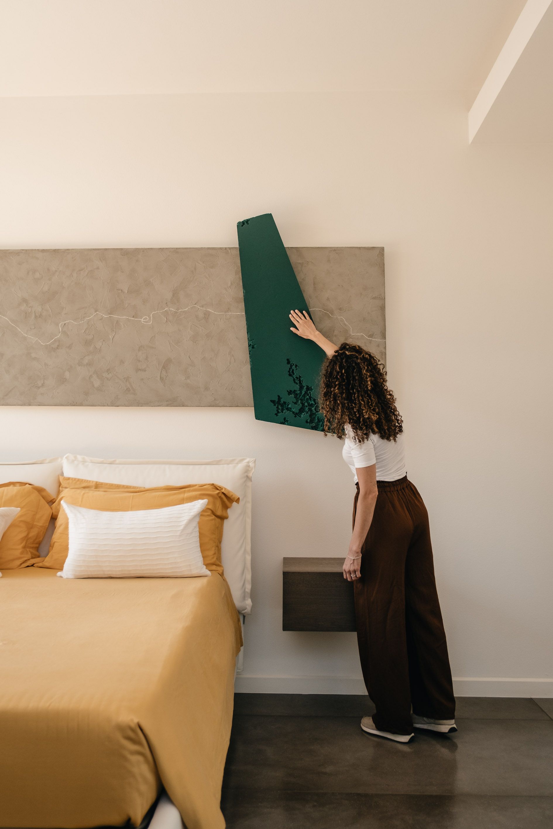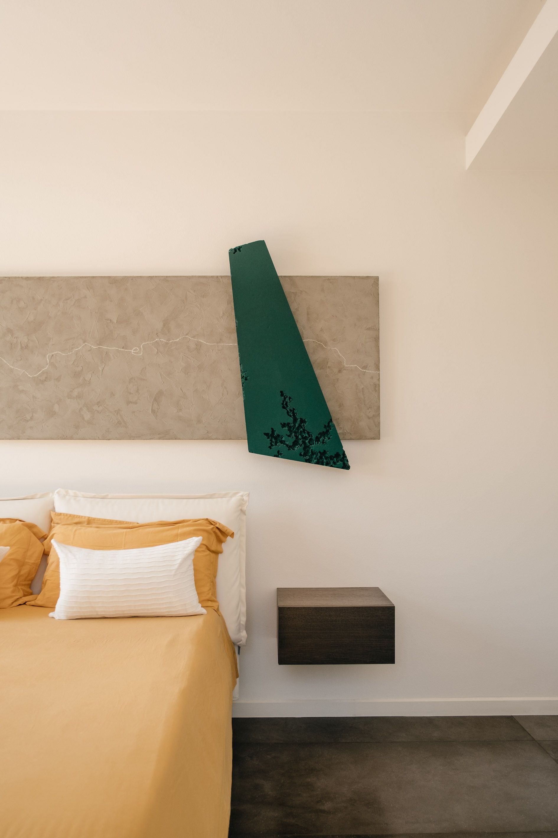 Questo verde è protagonista della scena, infine tutto è sospeso dal muro di qualche centimetro per creare un effetto di profondità.
